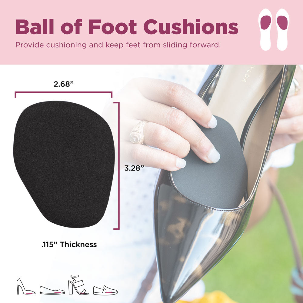 - Includes 1 pair Ball of Foot Cushions, 1 pair Back of Heel Cushions, and 1 pair 3/4 Insert Cushions