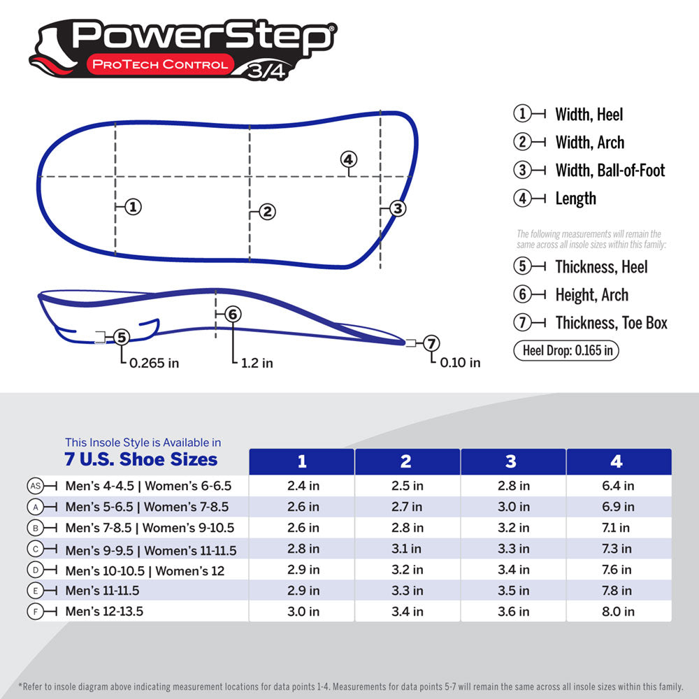 PowerStep ProTech Control 3/4 Insoles